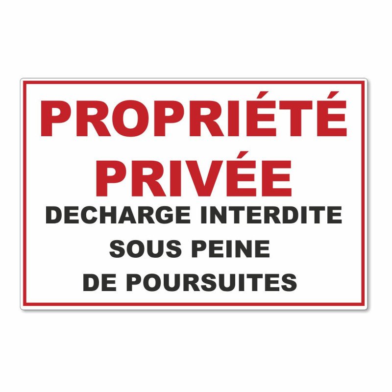 Panneau propriété privée, décharge interdite sous peine de poursuites en aluminium composite 3mm existe en 5 formats