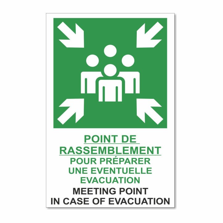Panneau point de rassemblement pour préparer une éventuelle évacuation en aluminium composite 3mm existe en 2 formats