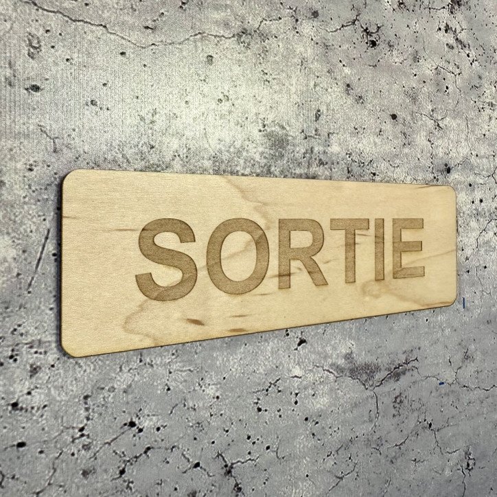 Plaque en bois massif érable avec texte SORTIE 145mmx45mm