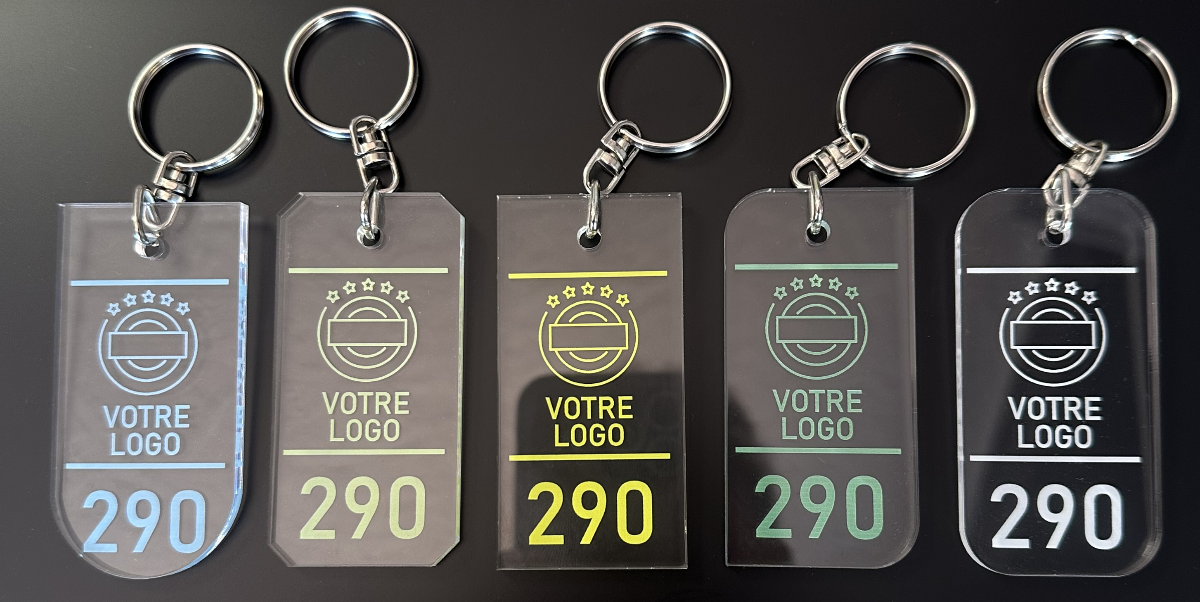 Porte-clés numérotés sur mesure en plexiglass 5mm - 80mmx40mm